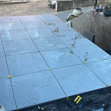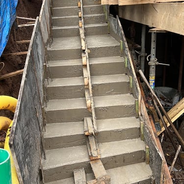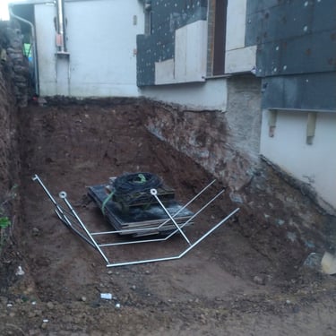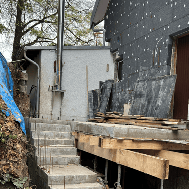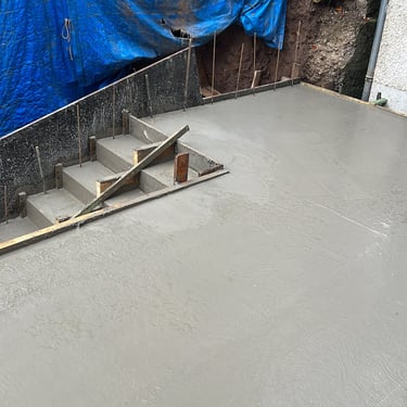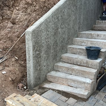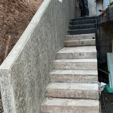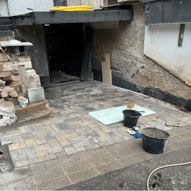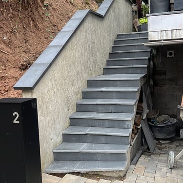 Entrada de cave com pavé de cimento, escadas em placas .