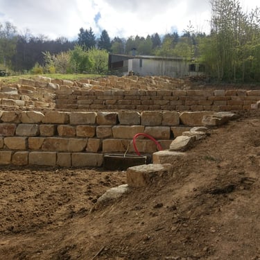 UM GRANDE DESAFIO!! Eis a melhor expressão para caraterizar este projeto com acessos reduzidos, com um volume enorme de terraplanagem e evacuação de terras, 195 toneladas de blocos de pedra. Sem duvida um resultado fantástico e mais um cliente satisfeito.