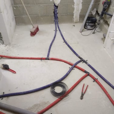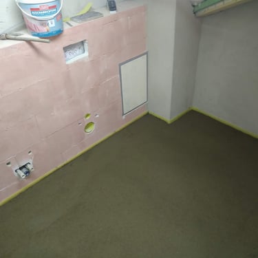 Trabalhos de instalação elétrica, circuito aquecimento, circuito de aguas, circuito de esgotos, argamassas, teto falso, ladrilhos, sanitários e pintura.