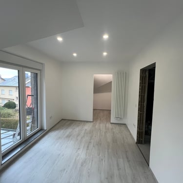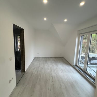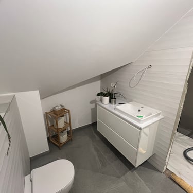 Neste cliente realizamos todos os trabalhos até ao mais pequeno detalhe. Contou com instalação elétrica, circuito aquecimento, argamassas, teto falso, pintura e chão em vinyle.