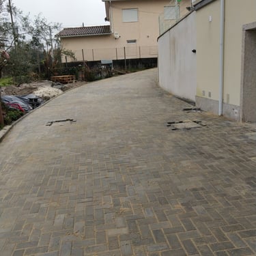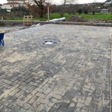 Entrada de garagem com pavé de cimento, com realização de fundo de caixa.